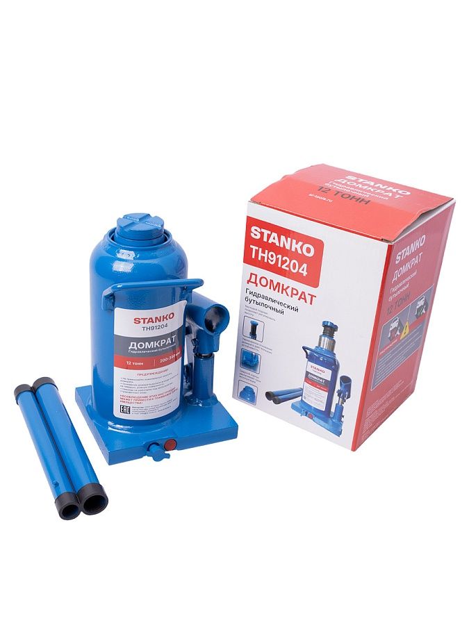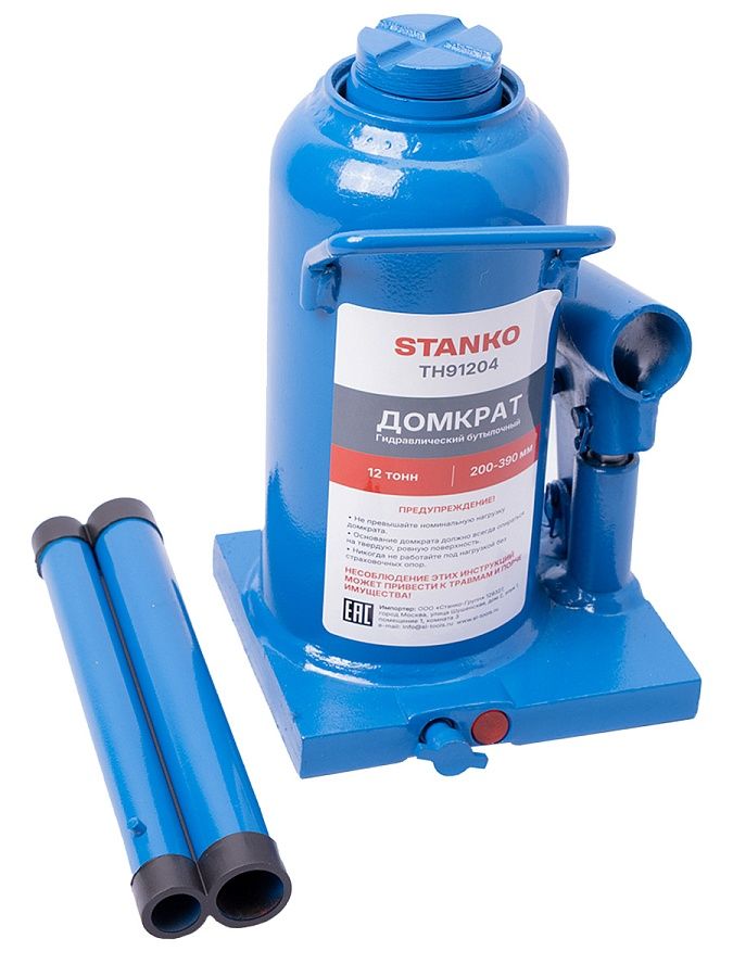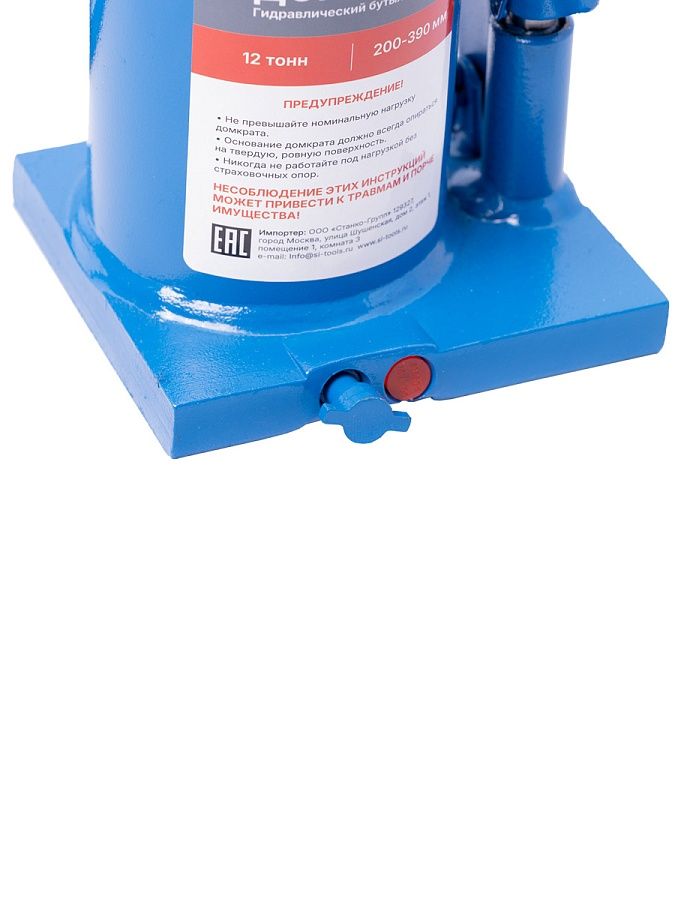 Домкрат бутылочный грузоподъемностью до 12 тонн используется при ремонте и техническом обслуживании транспортных средств, для поднятия тяжестей при строительстве или ремонтных работах.
