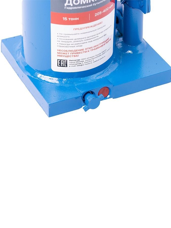 Домкрат бутылочный грузоподъемностью до 15 тонн используется при ремонте и техническом обслуживании транспортных средств, для поднятия тяжестей при строительстве или ремонтных работах.