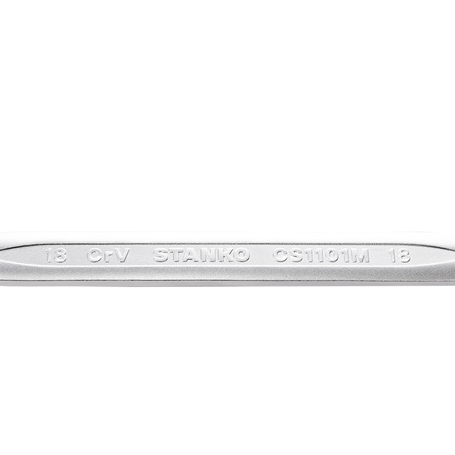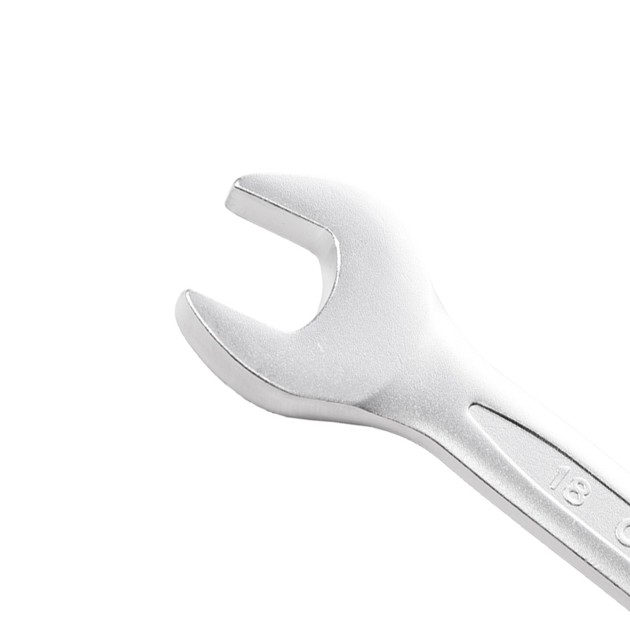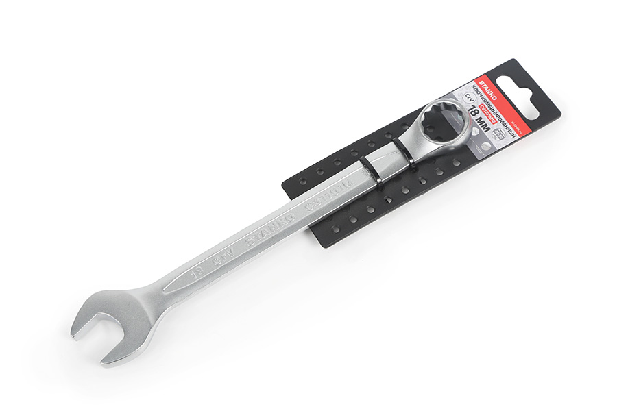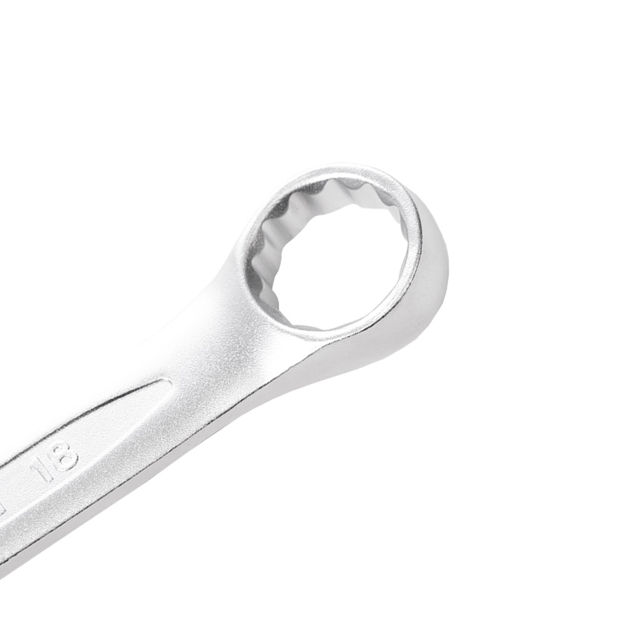 Финишная обработка Soft matt и хром никелевое покрытие комбинированного ключа обеспечивает надежную защиту от коррозии, а также надежный хват и препятствует выскальзыванию инструмента из рук. 12-гранный профиль накидной части подходит к головкам болтов и гайкам как 6-, так и 12-гранного профиля, и обеспечивает 5 градусный шаг перехвата. Специальный отгиб, в 15 градусов накидной части ключа позволит работать в местах с ограниченным доступом к крепежу и поможет подобраться к крепежу как с торца, так и с боку, в зависимости от места выполняемых работ.