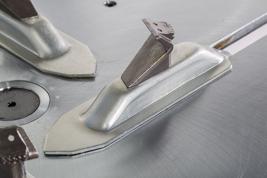 Движение стола осуществляется электрическим двигателем. Колесо на нем фиксируется прижимными кулачками. Отведение монтажной головки (пальца) мастер производит вручную.