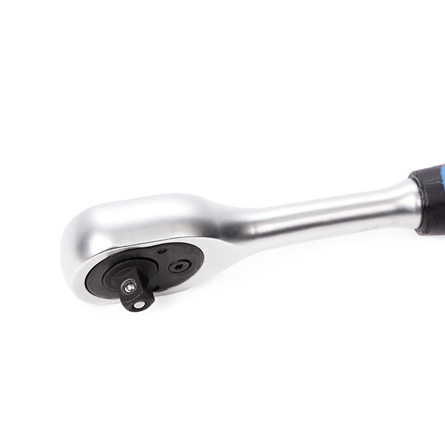 Трещотка изготовлена из высококачественной легированной хромованадиевой инструментальной стали, с последующей закалкой до твердости в пределах 46-48HRC, что обеспечивает оптимальное соотношение прочности и твердости. Эргономичная рукоять обеспечивает надежное удержание инструмента и комфортную работу, а благодаря высококачественным компонентам рукоять обладает высокой стойкостью к агрессивным средам.