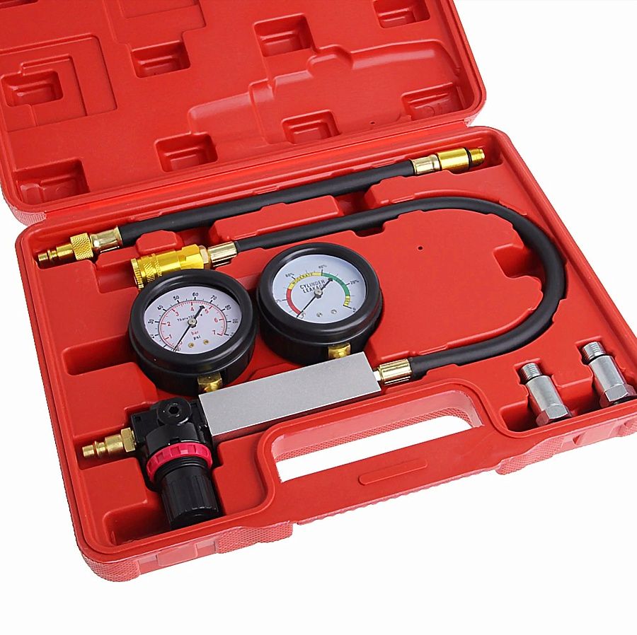 Представляет собой специальное приспособление с  двумя манометрами при помощи которого можно выявить целый ряд таки неисправностей как, плотность прилегания клапанов, целостность прокладки головки блока цилиндров, выявить трещины в стенках цилиндров, проверить плотность прилегания поршневых колец двигателе внутреннего сгорания.
